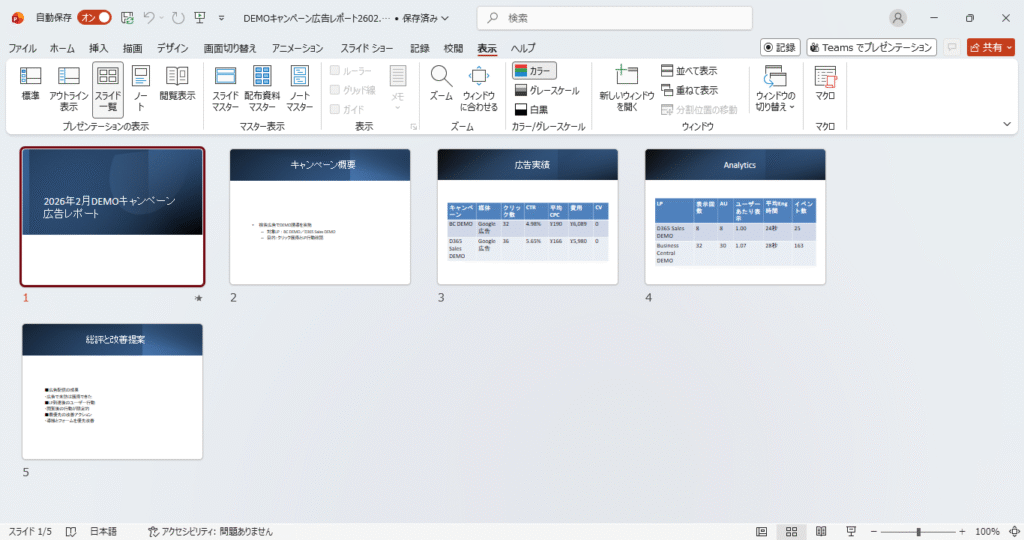広告レポートをPowerPointで自動生成する方法を紹介します。